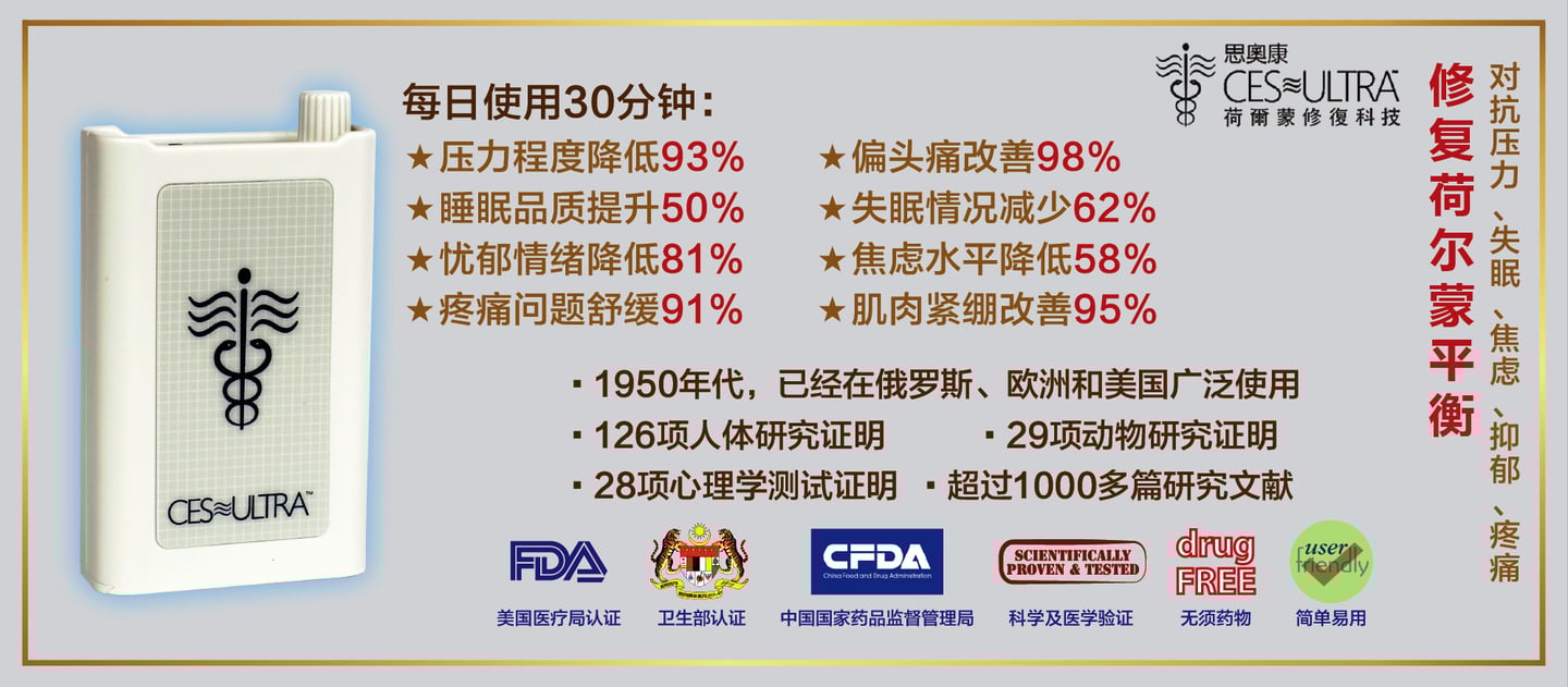 思奥康 CES Ultra 透过平衡荷尔蒙有效 缓解紧张、焦虑、抑郁、失眠、疼痛等优点。